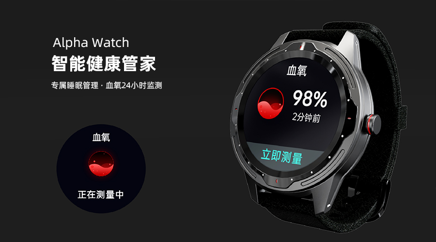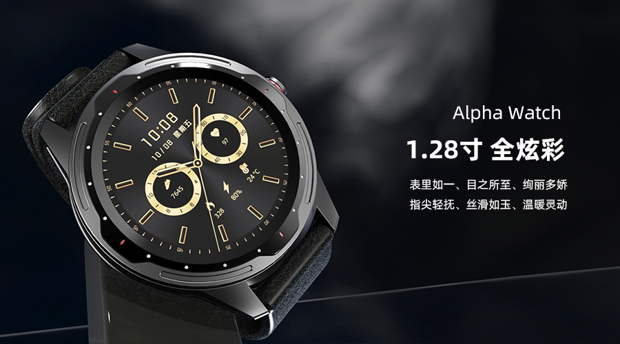 Alpha Watch具备高端级腕表品质,采用康宁大猩猩定制玻璃,搭配1.28寸全炫彩屏幕。一体化合金的机身,经三十八道CNC打磨,抛光工艺,更显肌肤质感。表盘内搭载Apollo3.5,运行流畅,超低功耗,可达21天超长续航。
