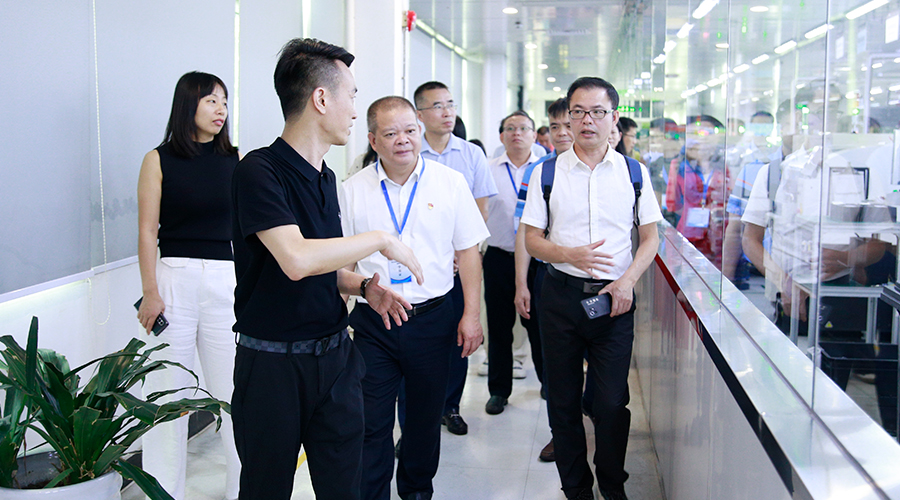 从展厅出来,穿过景色秀美的龟山公园,学员们来到乐鱼电子科技SMT生产车间进行参观。SMT生产车间是乐鱼电子科技精密制造服务中心,也是乐鱼电子科技自动化生产程度最高的“MVP王者”,主要涉及智能穿戴类、医疗类、音频类产品的生产与制造,包括穿戴手环、自行车智能行程检测仪、心电血压血氧健康一体机、电视音响、蓝牙音响等。