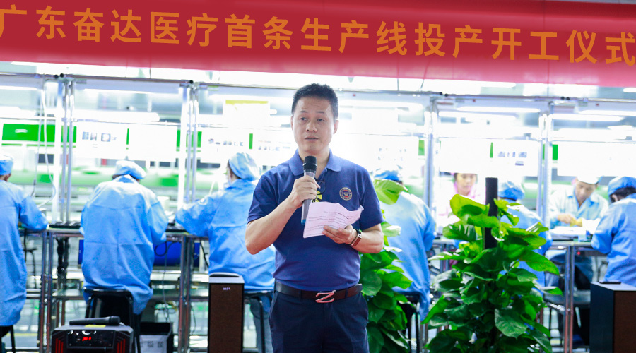 仪式最后,乐鱼电子科技董事肖晓先生代表公司管理层及智能家居事业部祝贺广东乐鱼电子医疗首条生产线顺利投产,希望在未来发展中,能够更上一层楼,取得新的成就。