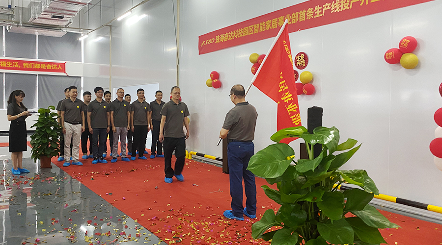 11月9号,乐鱼电子科技珠海园区智能家居事业部首条生产线投产开工仪式暨授旗仪式在珠海园区圆满举行。乐鱼电子科技总裁谢玉平女士、智能家居事业部总经理肖晓先生出席活动。
