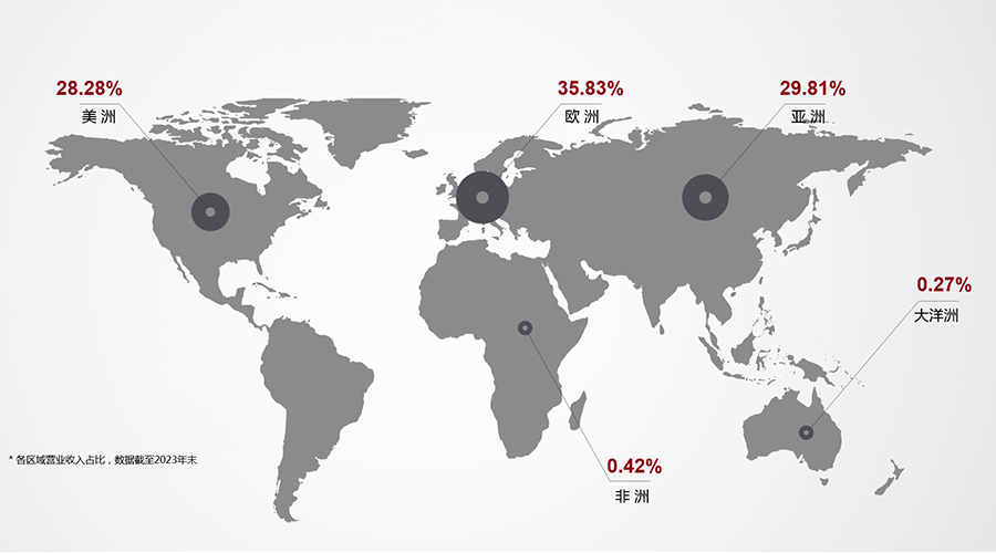 (2023年乐鱼电子科技全球市场营业收入占比图)