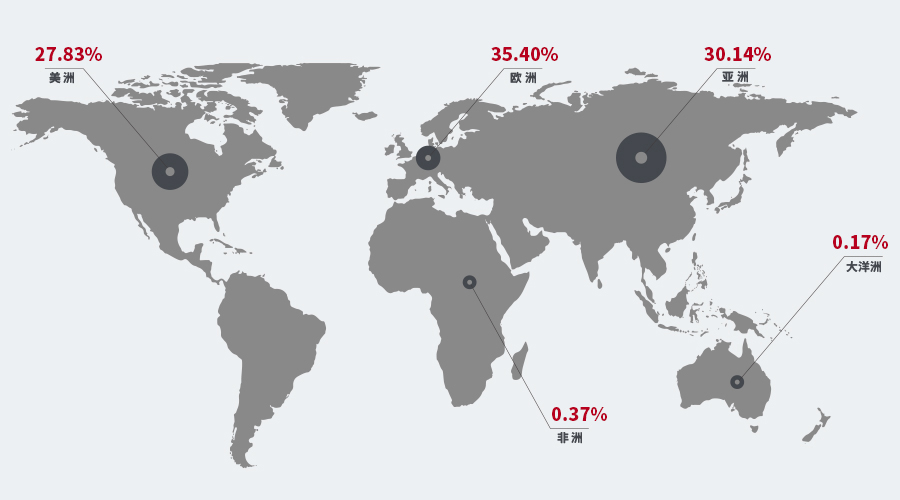 (乐鱼电子科技2024年上半年全球市场营收占比图)